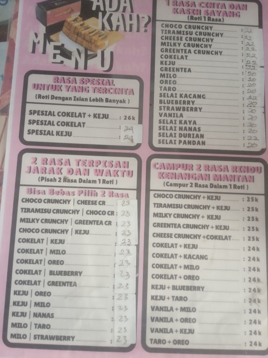 Aunty Paul's Cafe Bar Menu